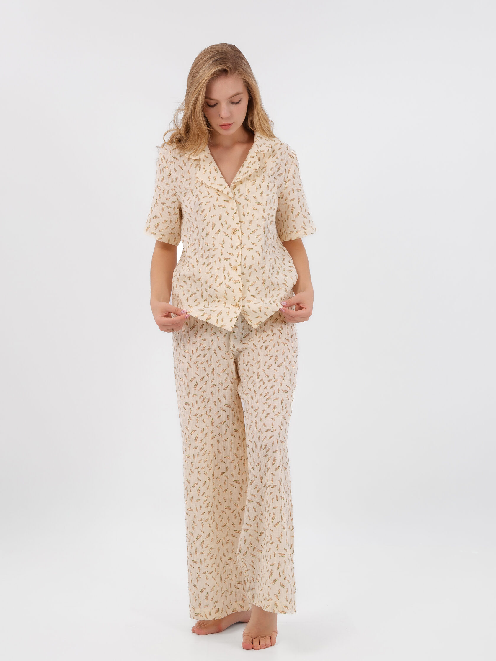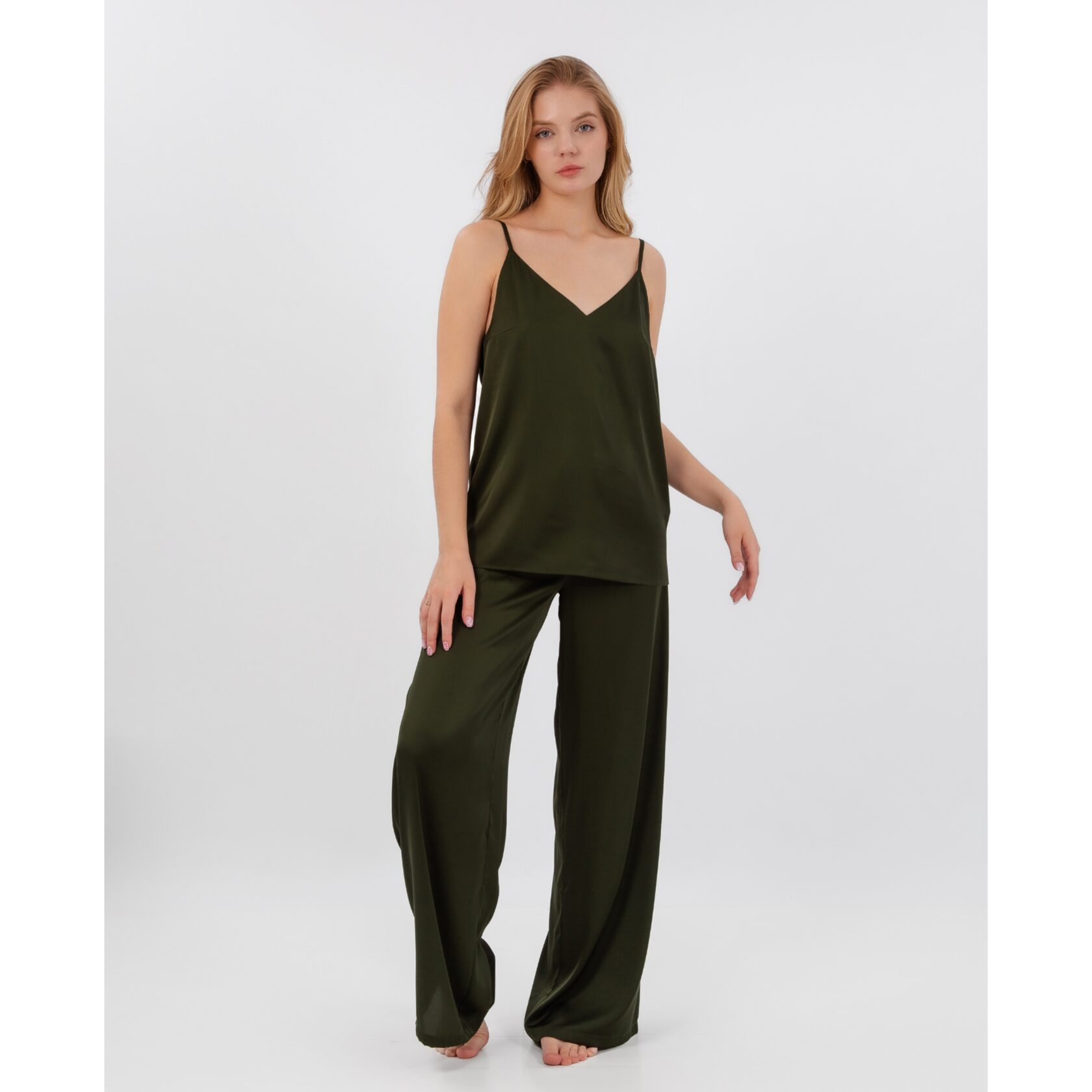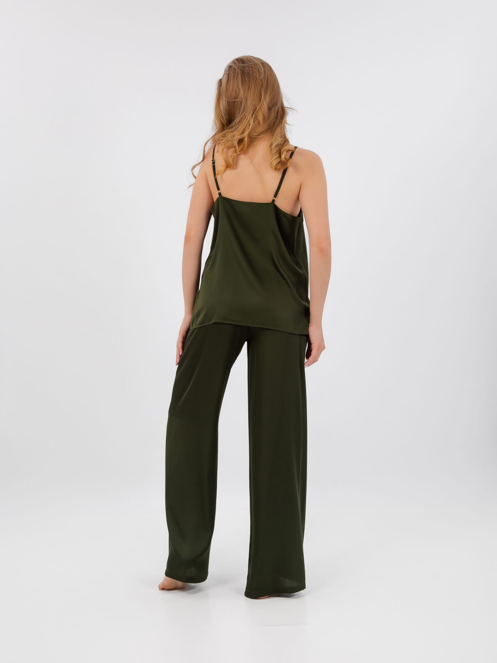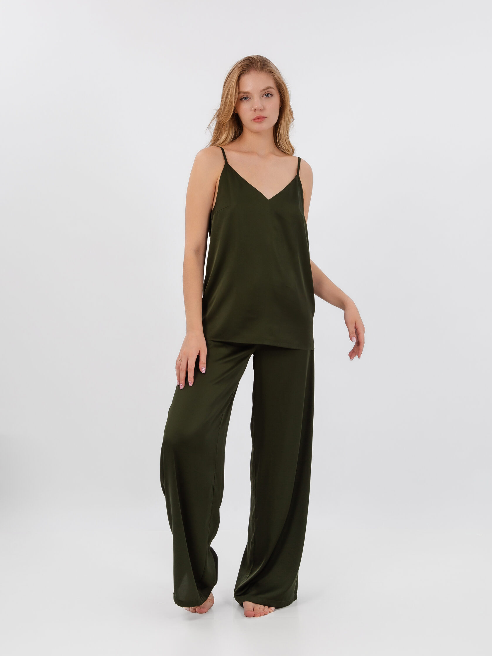 Топ на регулируемых лямках и брюки на регулируемой резинке. Под пижама может быть произведена из любой другой ткани, подходящей по технологии и в любых размерах. Товар поставляется с маркировкой Честный знак. Изделие продается как самостоятельная единица. Возможна поставка данной модели в комплекте с кимоно или рубашкой, как костюм в пижамном стиле или пижама. Цена указана при оптовом заказе от 50 до 1000 единиц. Свыше 1000 ед. стоимость обсуждается индивидуально. Для оценки качества, посадки модели по фигуре можно оформить заказ одной единицы, предварительно заключив договор.