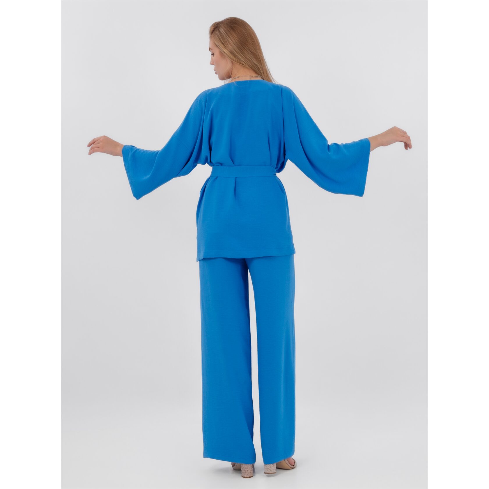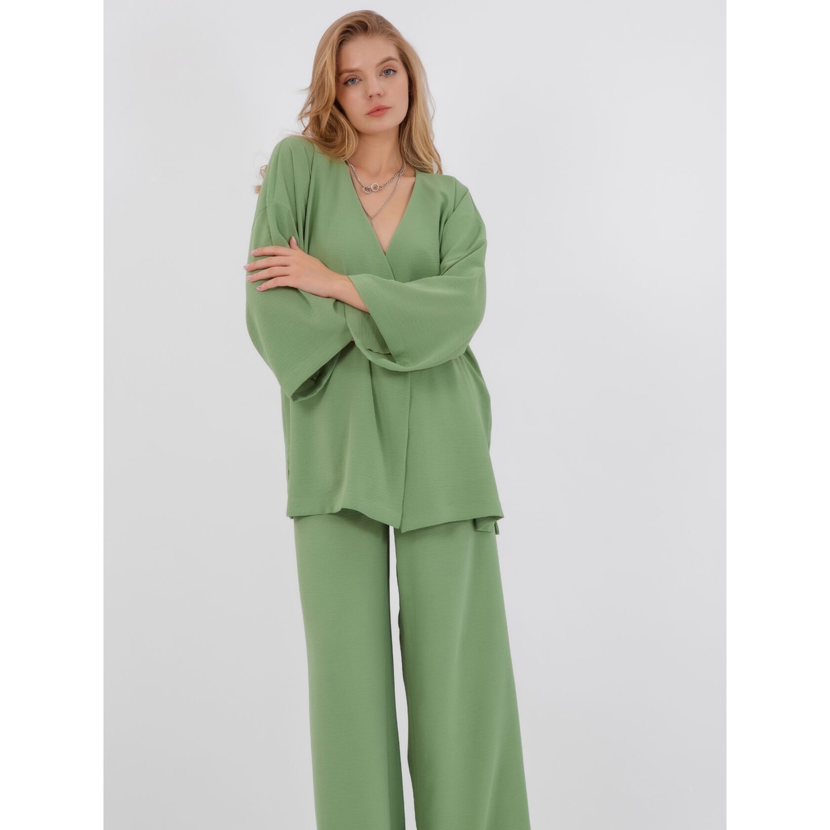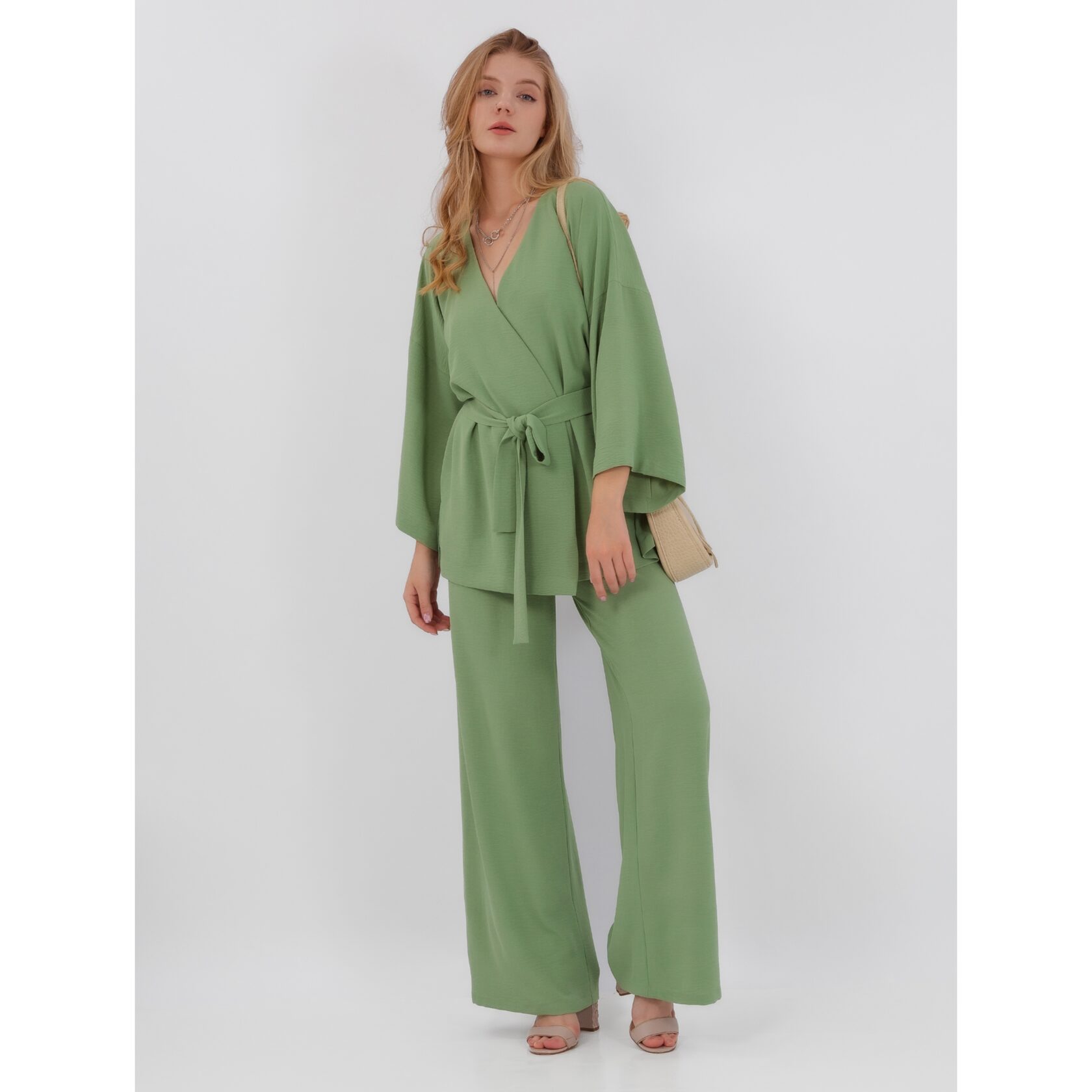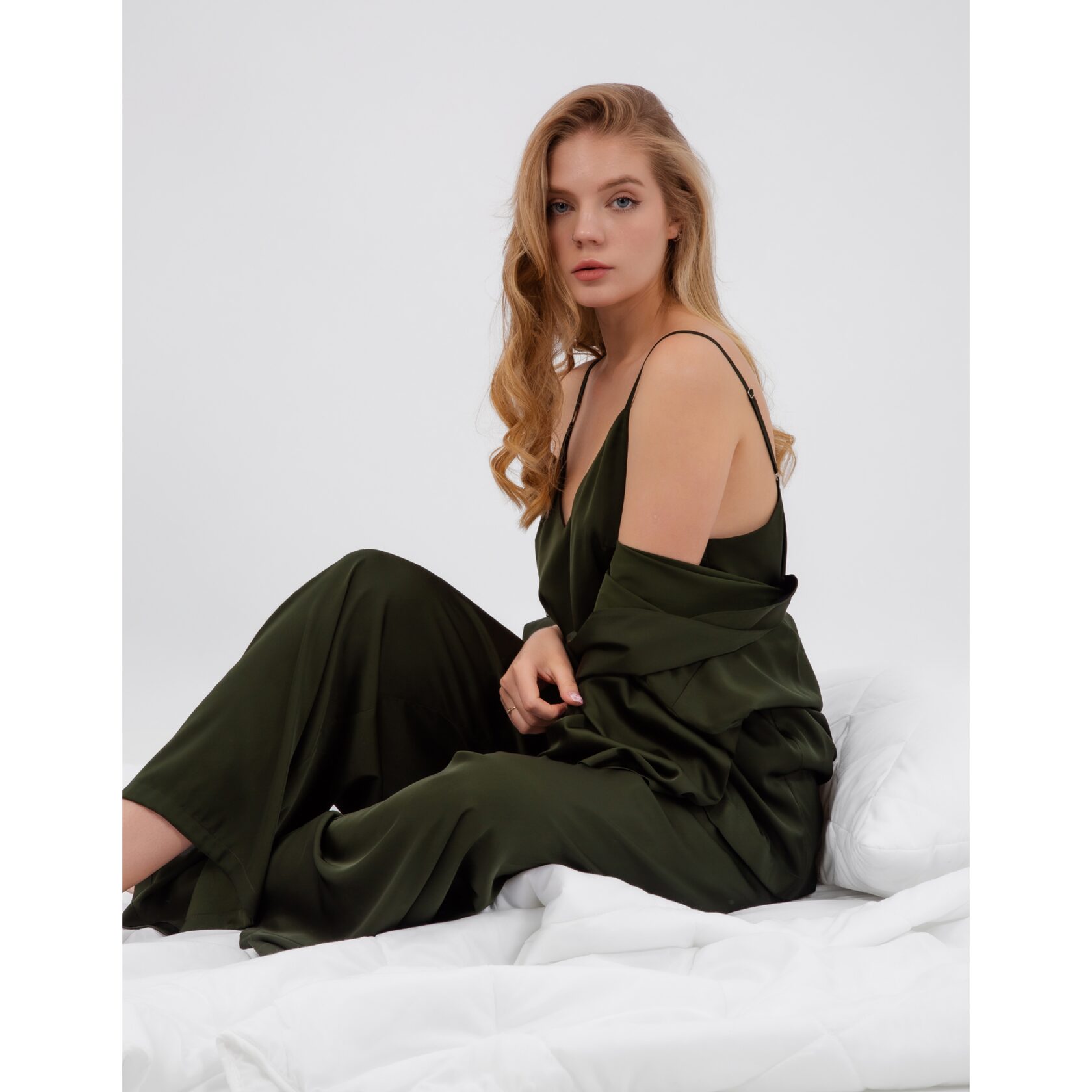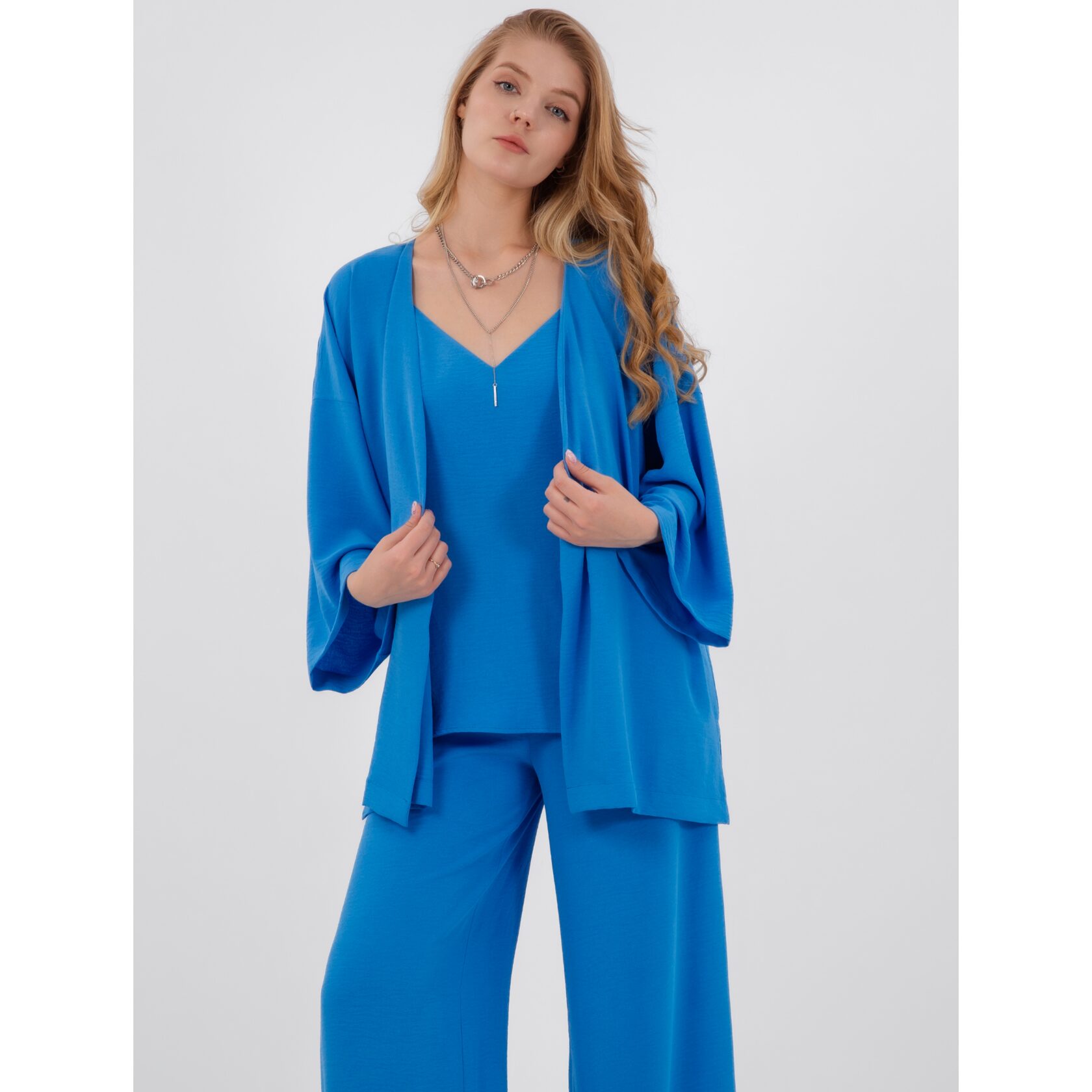 Костюм (топ, брюки, короткое кимоно с поясом) в пижамном стиле
