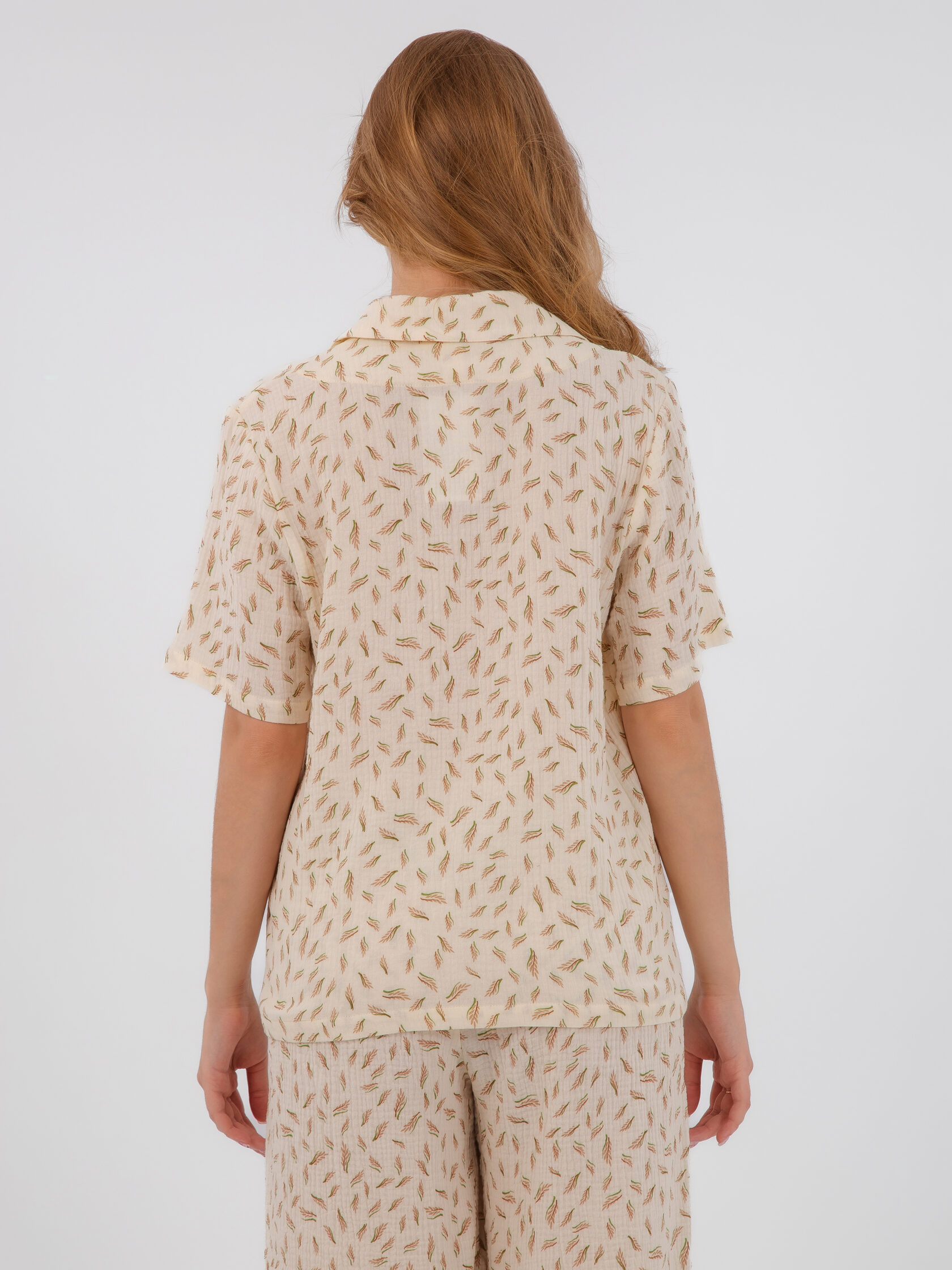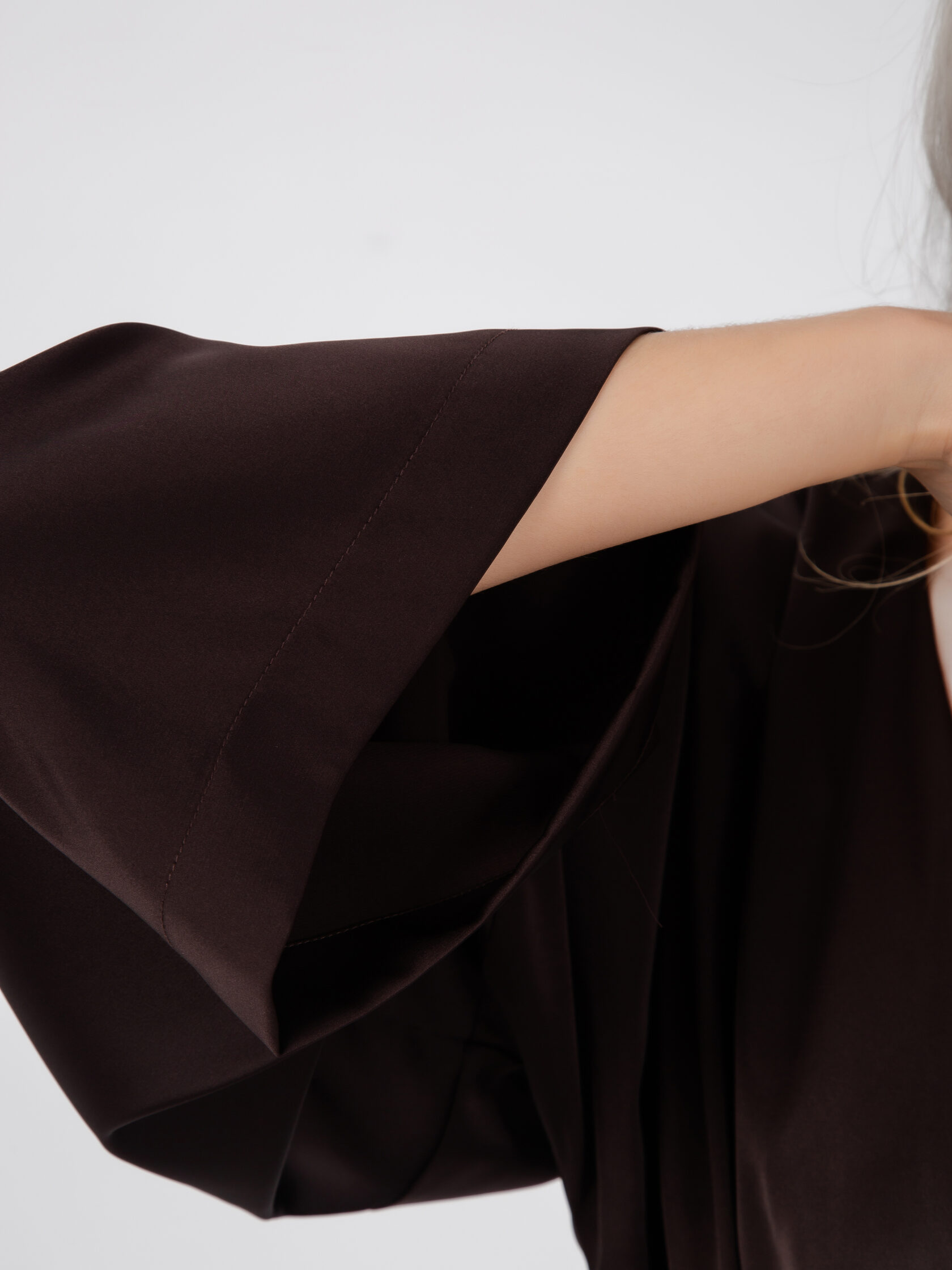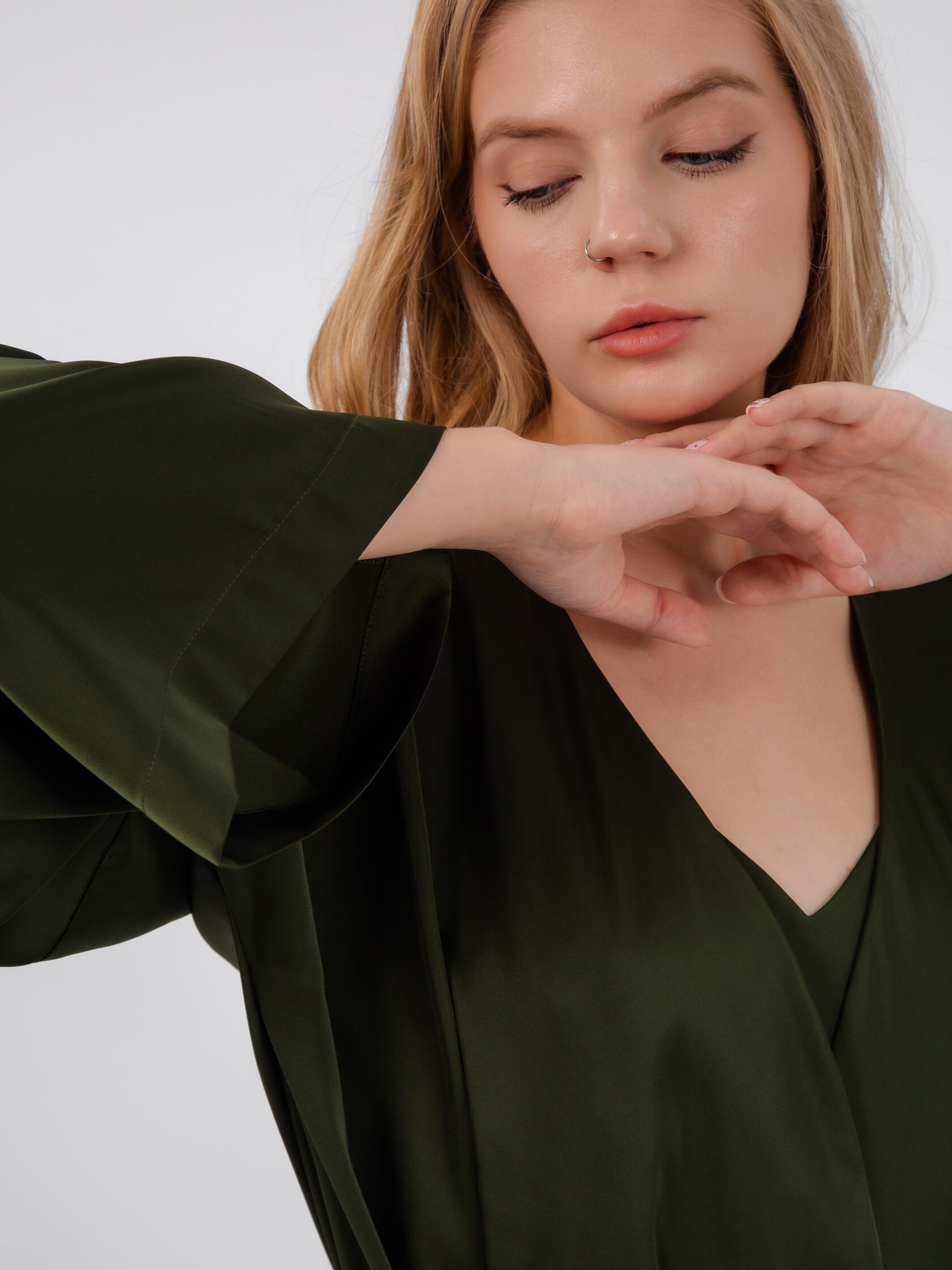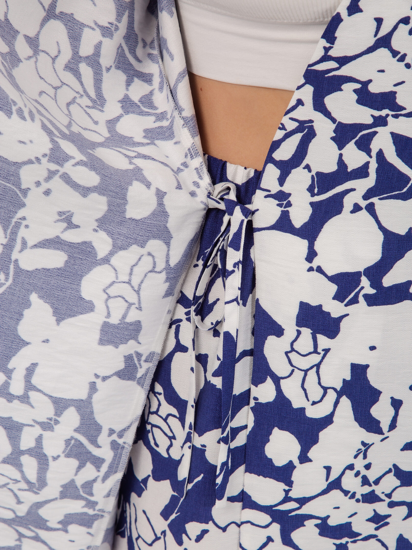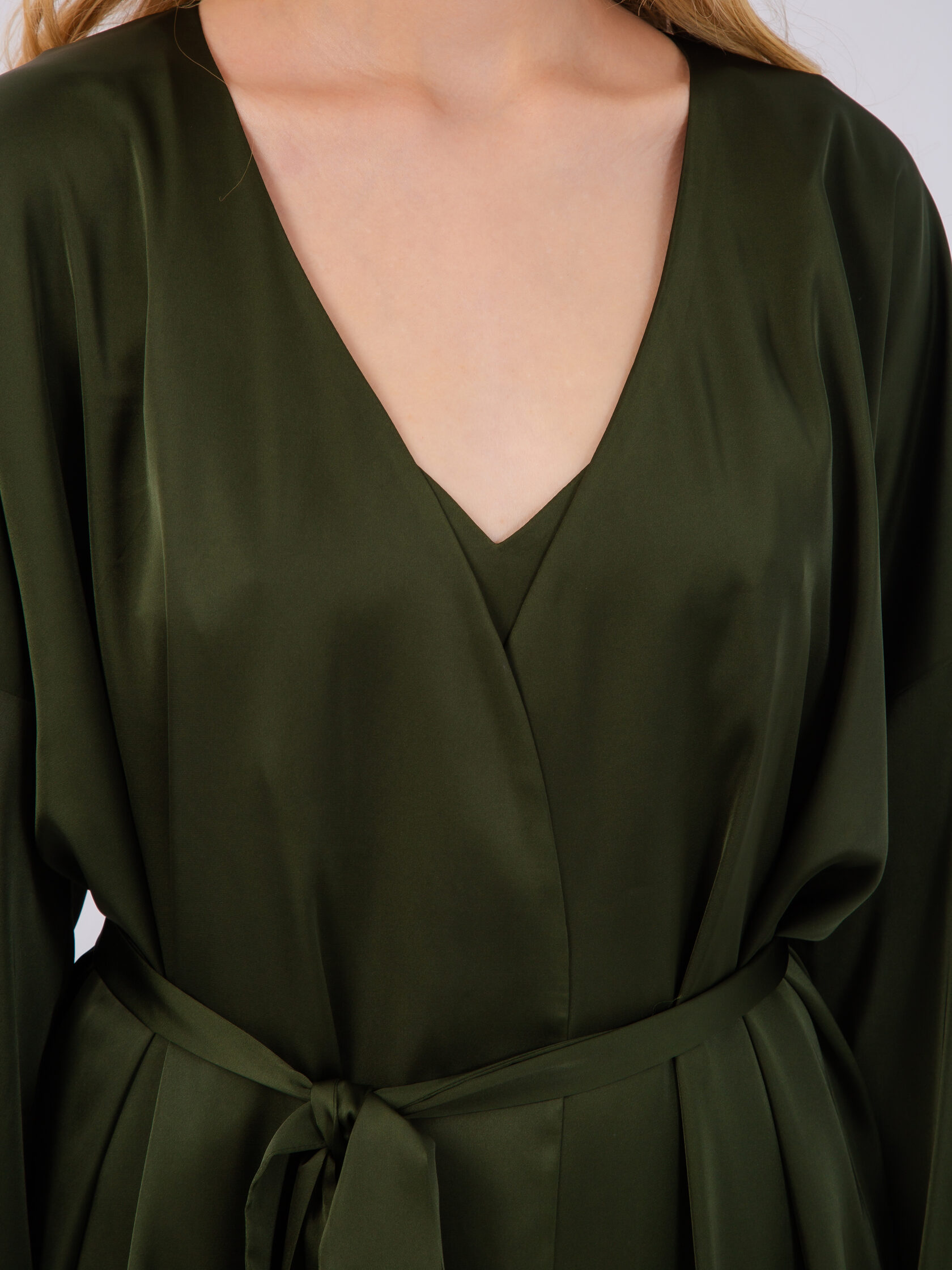 Костюм (топ, брюки, короткое кимоно с поясом) в пижамном стиле