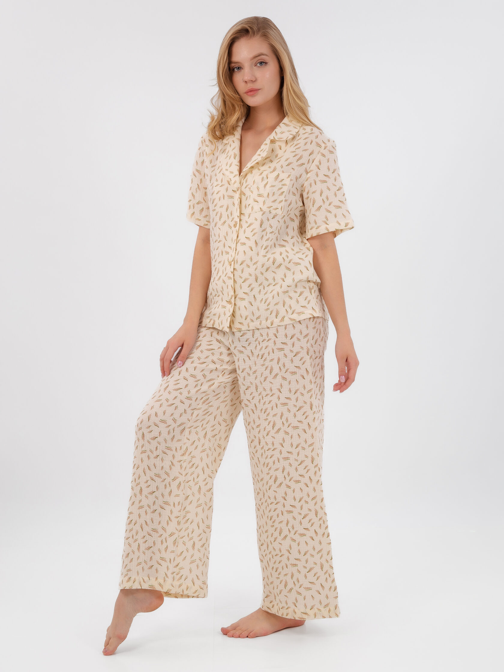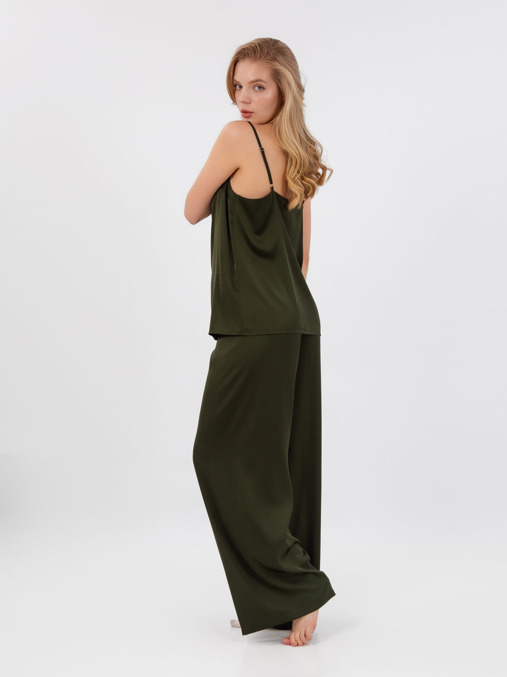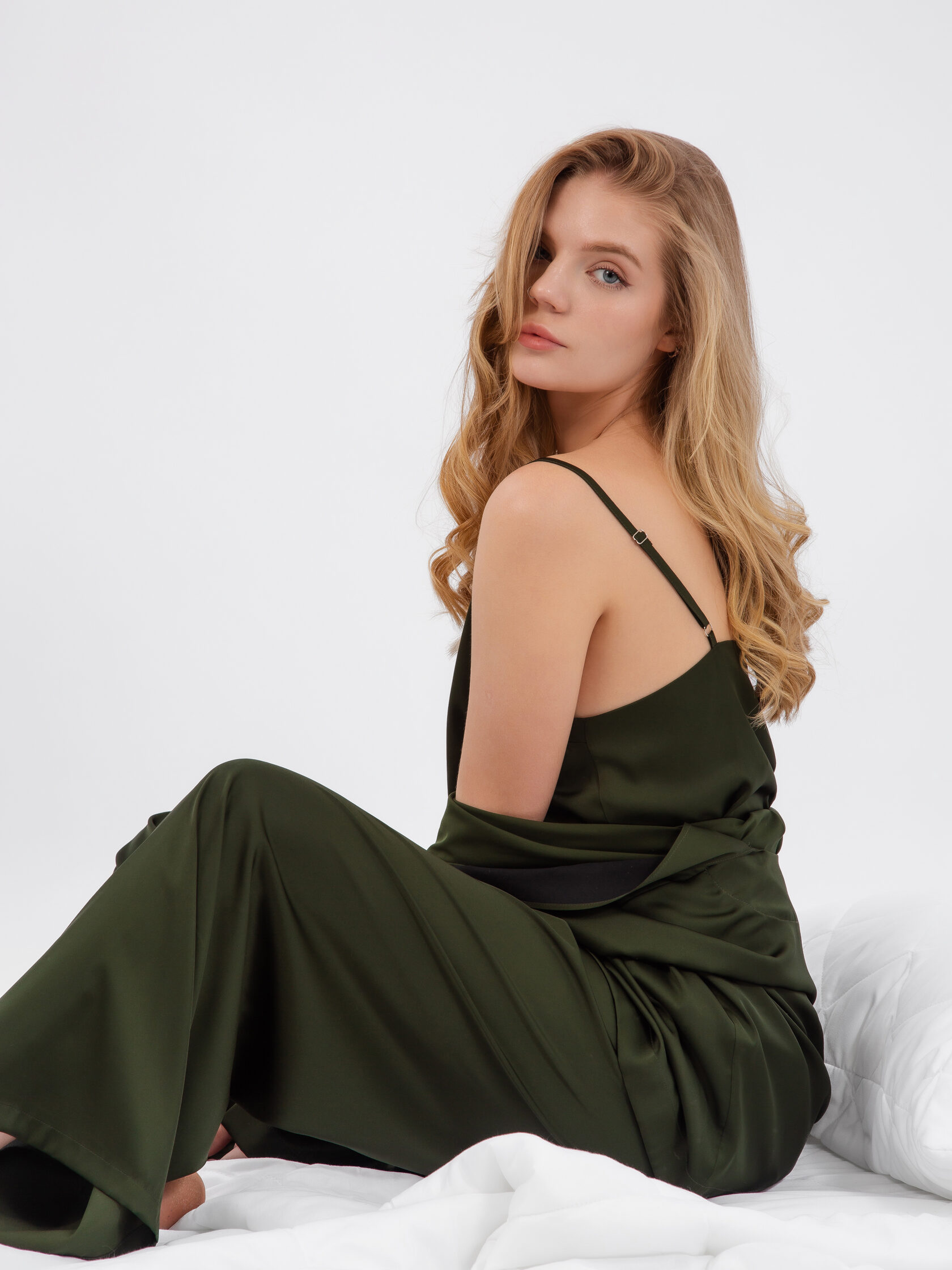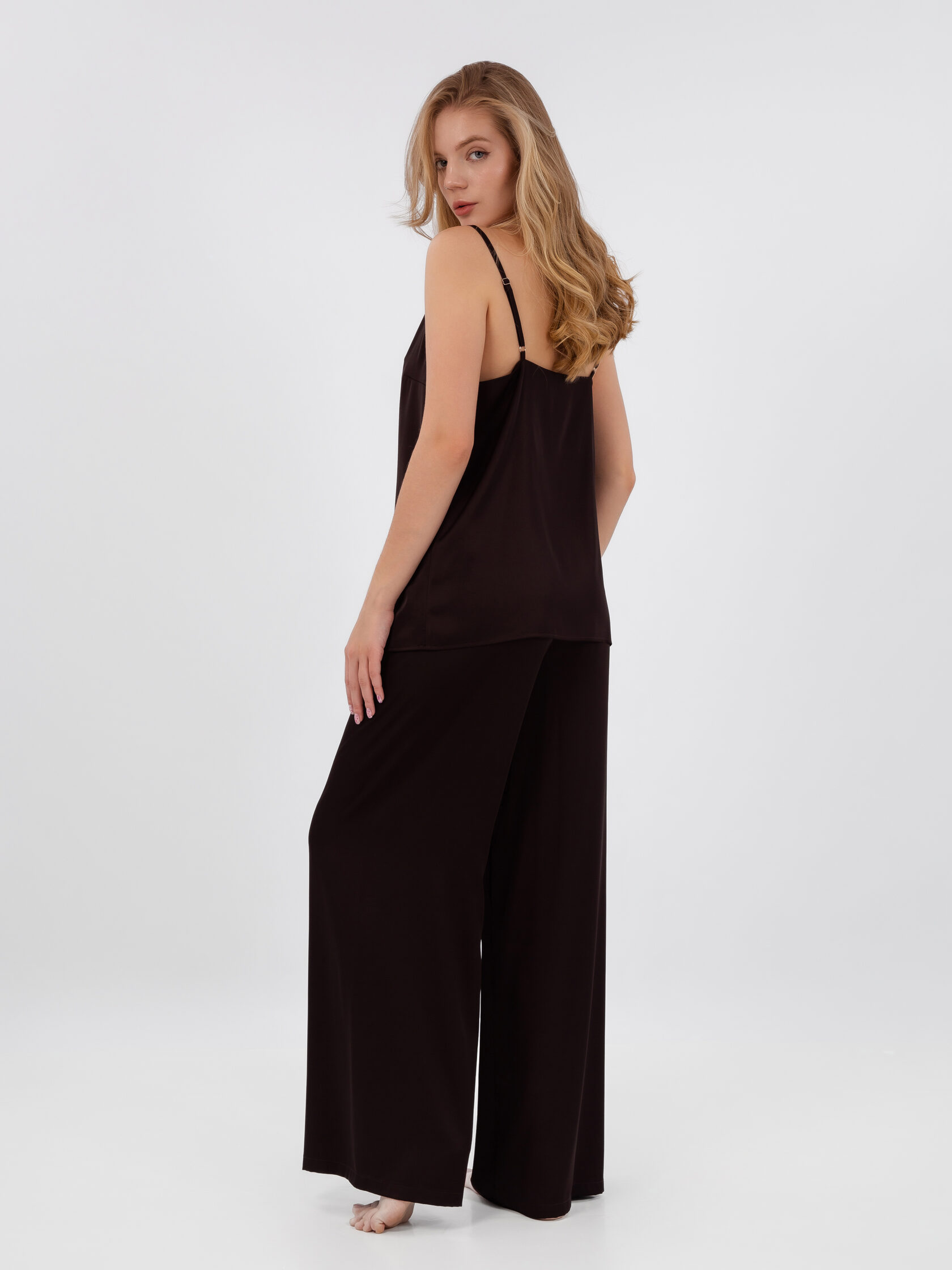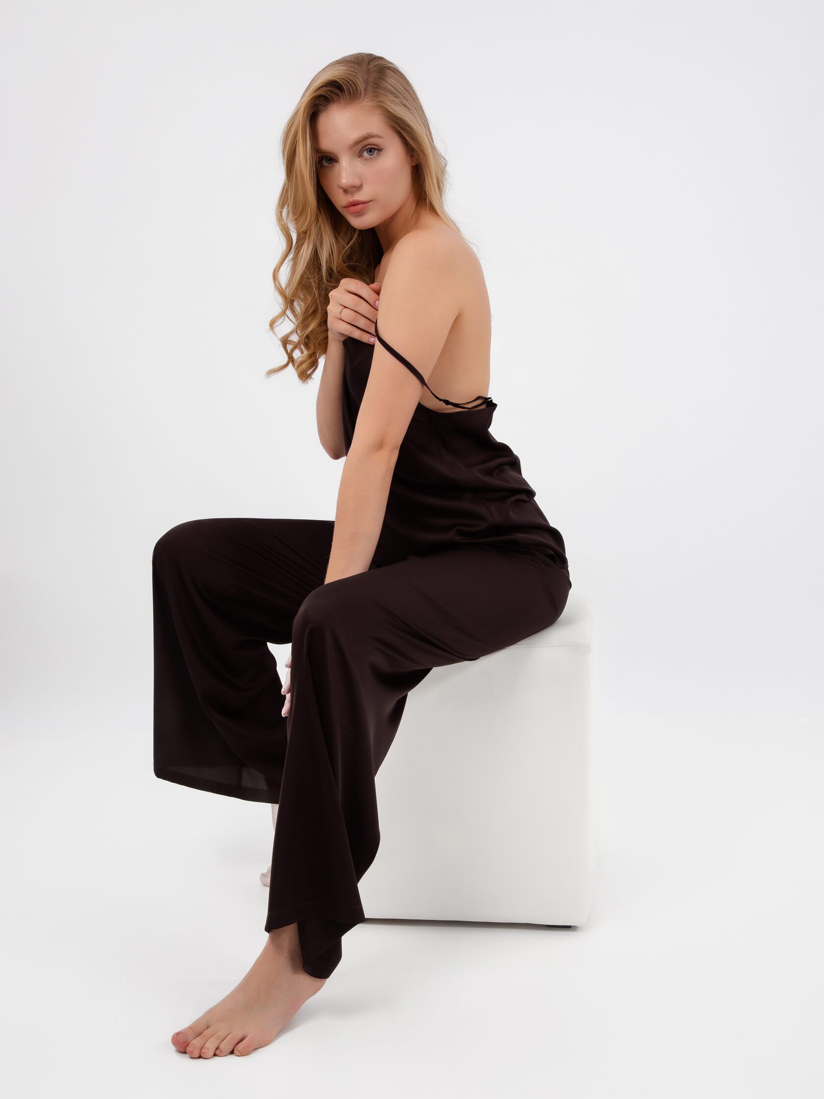 Топ на регулируемых лямках и брюки на регулируемой резинке. Под заказ пижама может быть произведена из любой другой ткани, подходящей по технологии и в любых размерах. Товар поставляется с маркировкой Честный знак. Изделие продается как самостоятельная единица. Возможна поставка данной модели в комплекте с кимоно или рубашкой, как костюм в пижамном стиле или пижама. Цена указана при оптовом заказе от 50 до 1000 единиц. Свыше 1000 ед. стоимость обсуждается индивидуально. Для оценки качества, посадки модели по фигуре можно оформить заказ одной единицы, предварительно заключив договор.