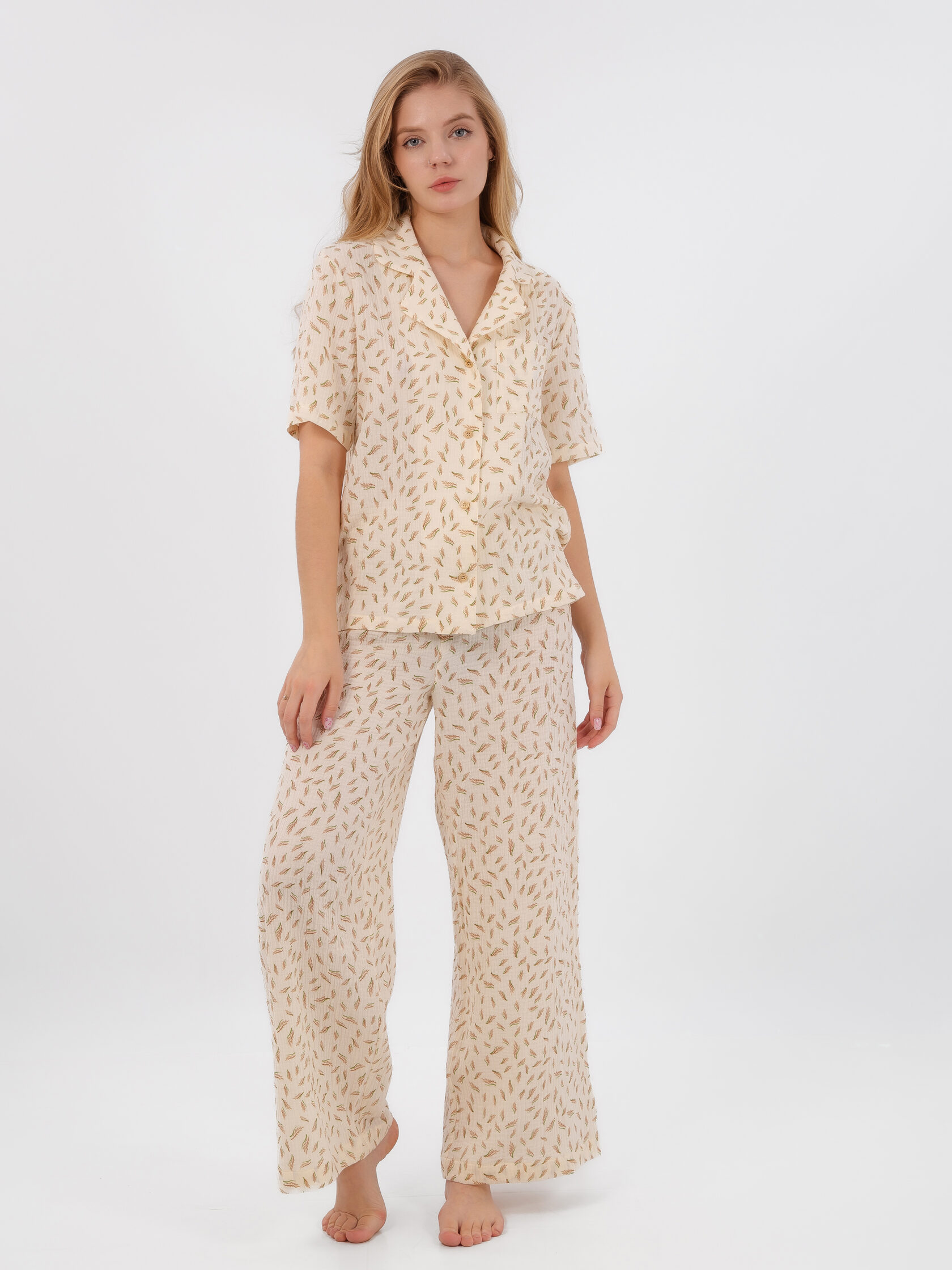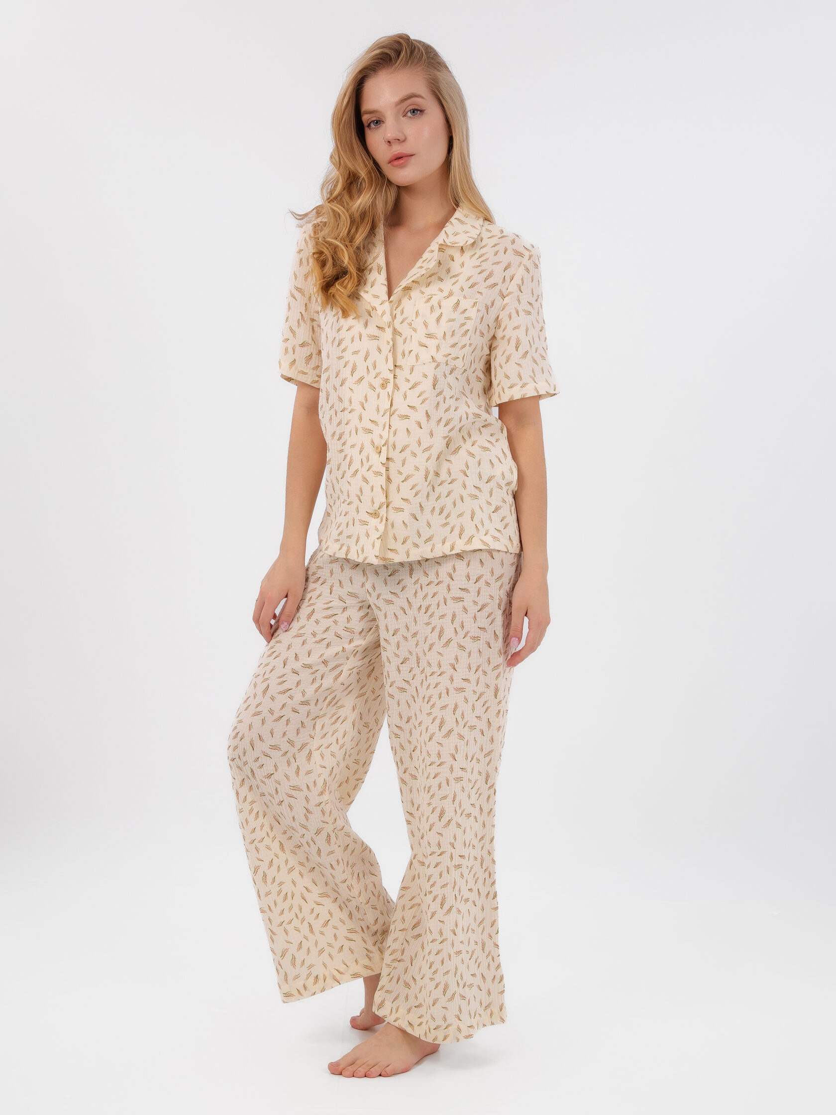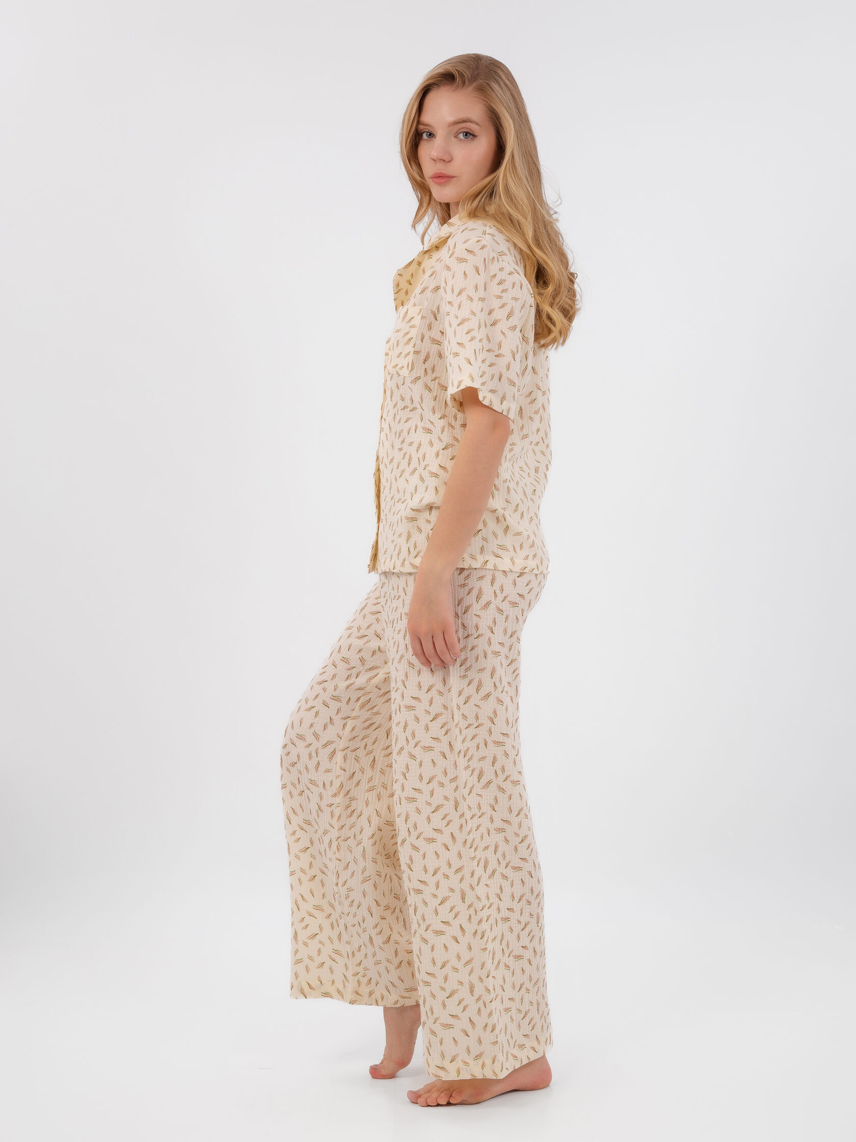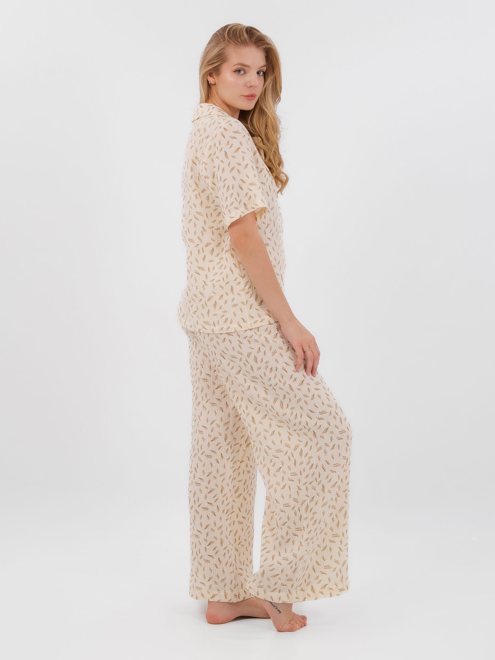 Топ на регулируемых лямках и брюки на регулируемой резинке. Под заказ пижама может быть произведена из любой другой ткани, подходящей по технологии и в любых размерах. Товар поставляется с маркировкой Честный знак. Изделие продается как самостоятельная единица. Возможна поставка данной модели в комплекте с кимоно или рубашкой, как костюм в пижамном стиле или пижама. Цена указана при оптовом заказе от 50 до 1000 единиц. Свыше 1000 ед. стоимость обсуждается индивидуально. Для оценки качества, посадки модели по фигуре можно оформить заказ одной единицы, предварительно заключив договор.