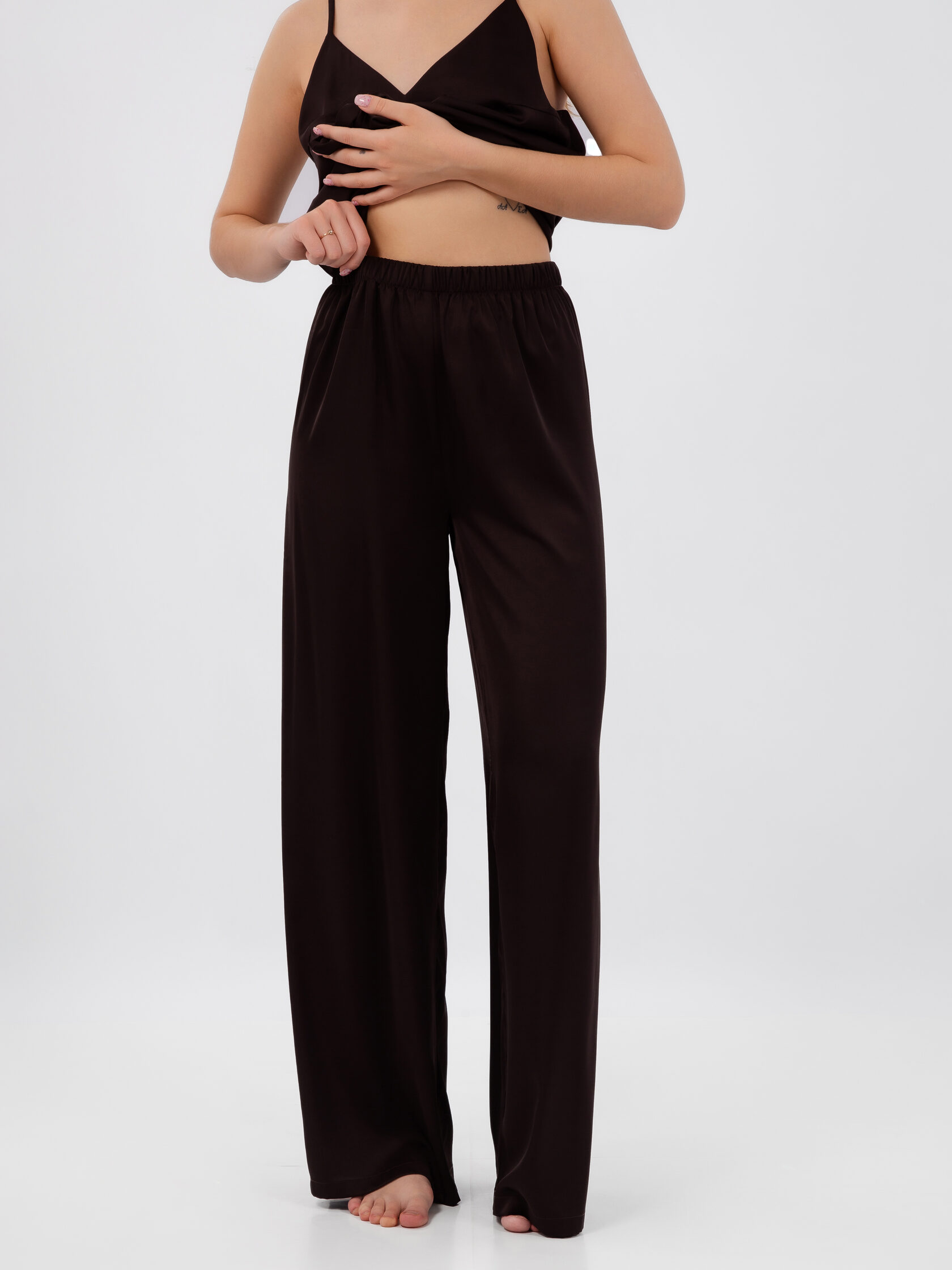 Пижамные брюки из армани-шелка могут быть быть произведены из любой другой ткани, подходящей по технологии и в любых размерах. Товар поставляется с маркировкой Честный знак. Изделие продается как самостоятельная единица. Возможна поставка данной модели в комплекте с кимоно, топом или рубашкой, как костюм в пижамном стиле или пижама. Цена указана при оптовом заказе от 50 до 1000 единиц. Свыше 1000 ед. стоимость обсуждается индивидуально. Для оценки качества, посадки модели по фигуре можно оформить заказ одной единицы, предварительно заключив договор.