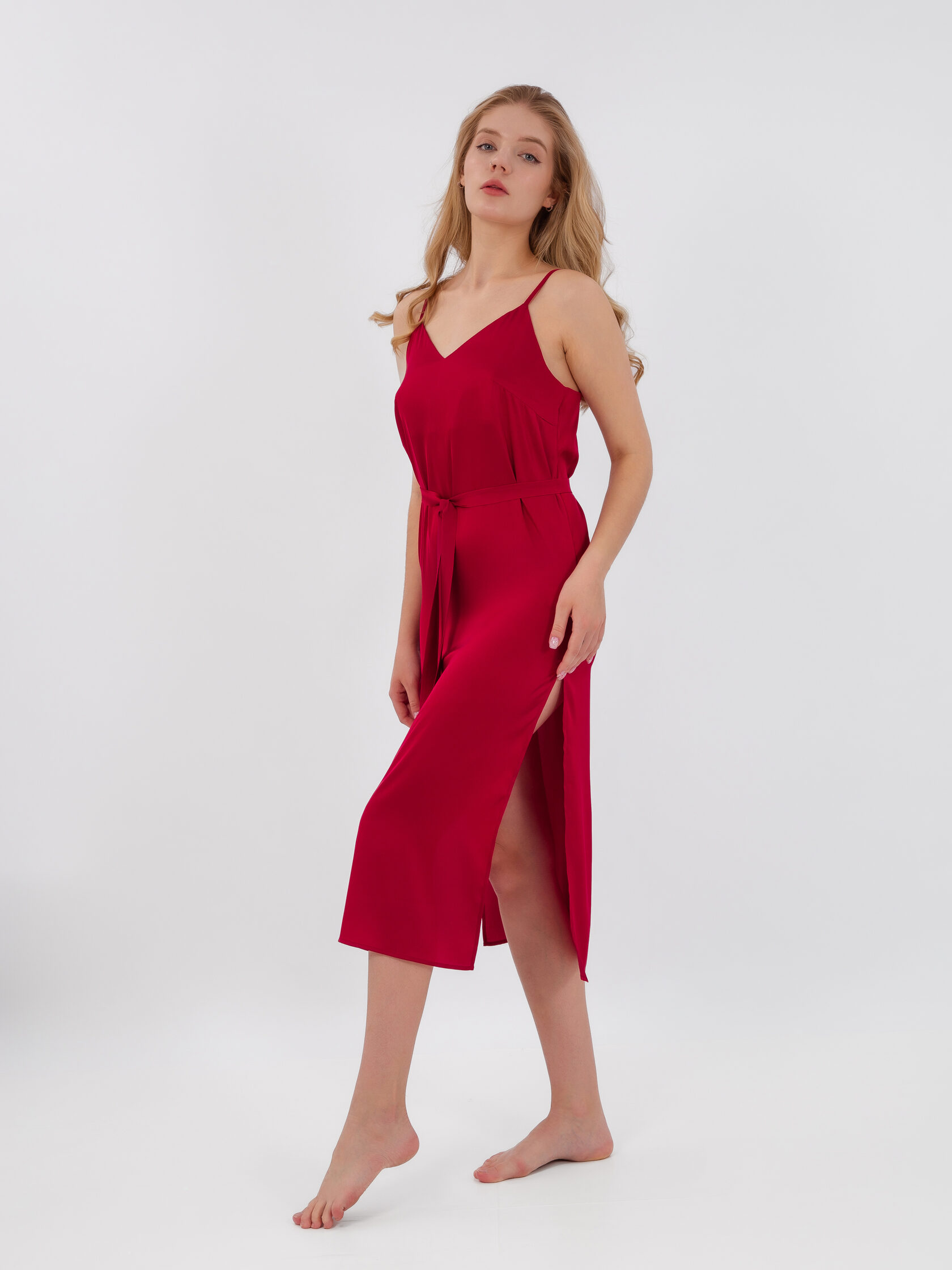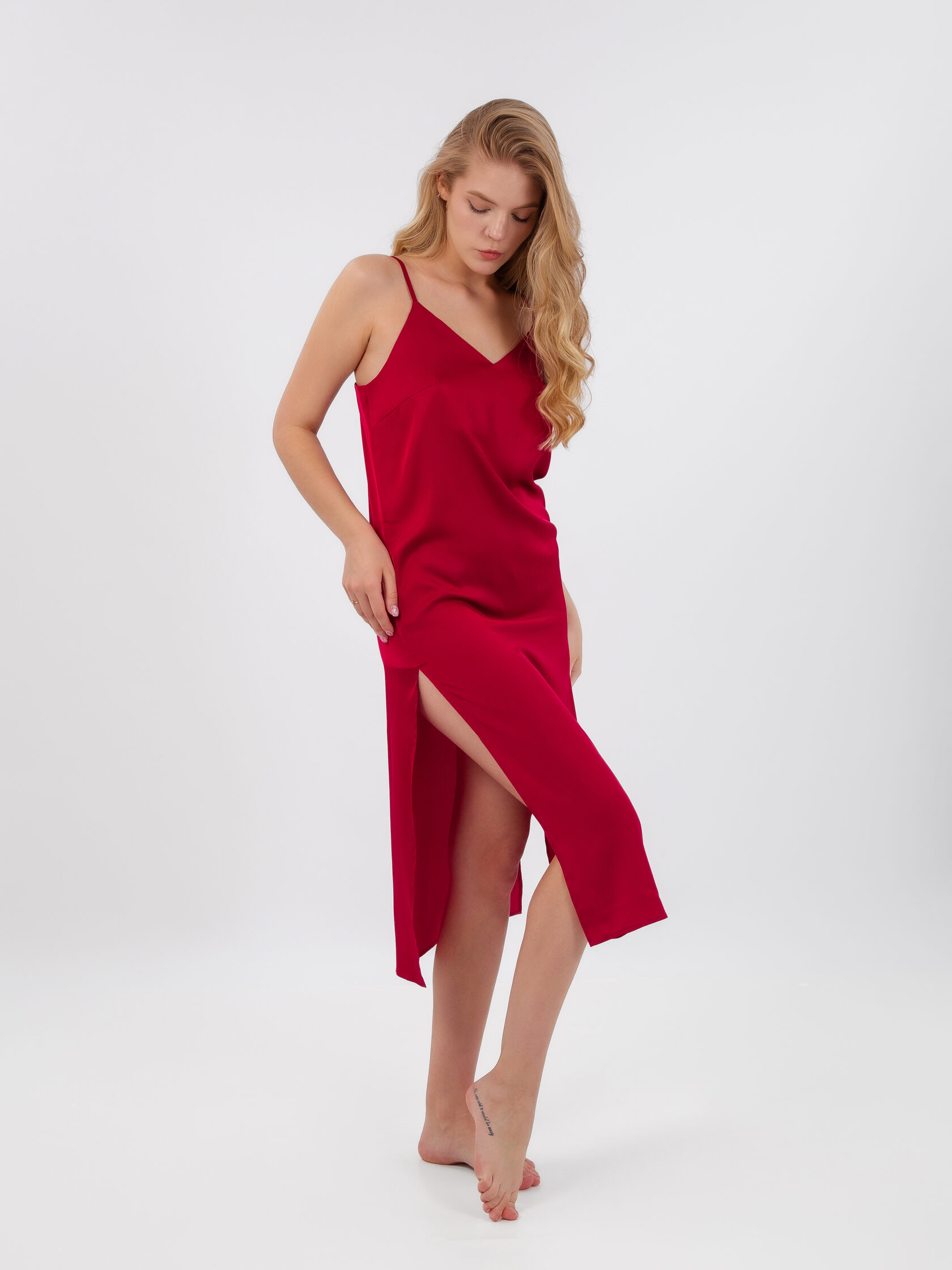 Платье интересного кроя из армани-шелка на бретелях с регулируемыми бретелями. Идеальное качество пошива. Под заказ можно произвести из любой другой ткани, подходящей по технологии и в любых размерах. Товар поставляется с маркировкой Честный знак. Изделие продается как самостоятельная единица. Возможна поставка данной модели в комплекте с рубашкой, как костюм в пижамном стиле или пижама. Цена указана при оптовом заказе от 50 до 1000 единиц. Свыше 1000 ед. стоимость обсуждается индивидуально. Для оценки качества, посадки модели по фигуре можно оформить заказ одной единицы, предварительно заключив договор.
