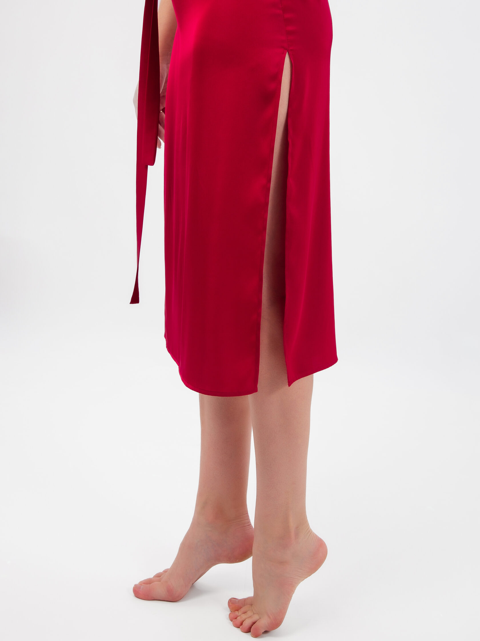 Юбка на запах из армани-шелка. Идеальное качество пошива. Под заказ можно произвести из любой другой ткани, подходящей по технологии и в любых размерах. Товар поставляется с маркировкой Честный знак. Изделие продается как самостоятельная единица. Возможна поставка данной модели в комплекте с рубашкой и топом, как костюм в пижамном стиле или пижама. Цена указана при оптовом заказе от 50 до 1000 единиц. Свыше 1000 ед. стоимость обсуждается индивидуально. Для оценки качества, посадки модели по фигуре можно оформить заказ одной единицы, предварительно заключив договор.