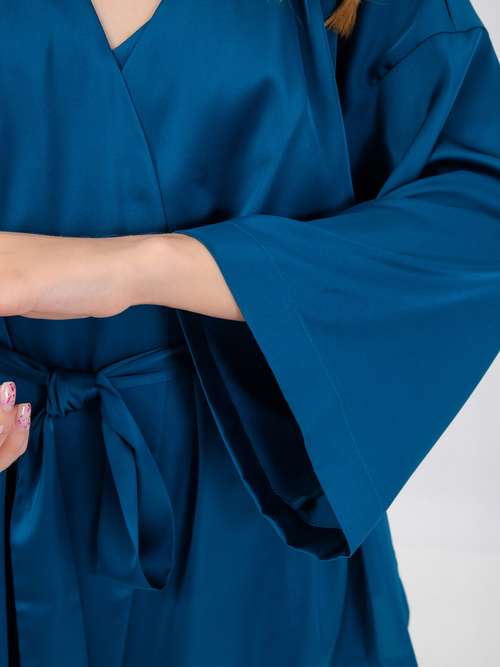 Кимоно короткое с поясом из армани-шелка могут быть быть произведено из любой другой ткани, подходящей по технологии и в любых размерах. Товар поставляется с маркировкой Честный знак. Изделие продается как самостоятельная единица. Возможна поставка данной модели в комплекте с топом, брюками, как костюм в пижамном стиле или пижама. Цена указана при оптовом заказе от 50 до 1000 единиц. Свыше 1000 ед. стоимость обсуждается индивидуально. Для оценки качества, посадки модели по фигуре можно оформить заказ одной единицы, предварительно заключив договор.