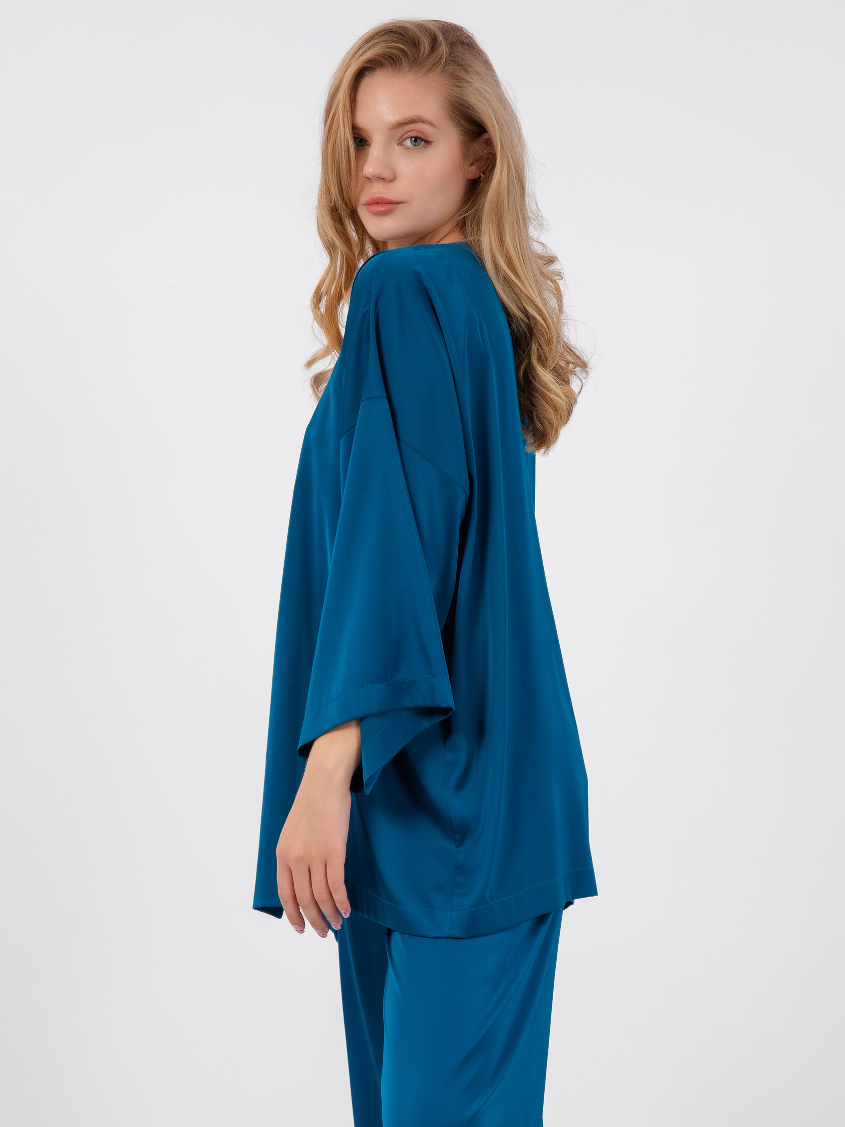Рубашка свободного кроя незаменимая вещь в гардеробе каждой женщины. У нас данная модель представлена в пижамном стиле из армани-шелка, но по факту это классическая рубашка высокого качества пошива. Под заказ мажет быть произведена из любой другой ткани, подходящей по технологии и в любых размерах. Товар поставляется с маркировкой Честный знак. Изделие продается как самостоятельная единица. Возможна поставка данной модели в комплекте с брюками паллацио, как костюм в пижамном стиле или пижама. Цена указана при оптовом заказе от 50 до 1000 единиц. Свыше 1000 ед. стоимость обсуждается индивидуально. Для оценки качества, посадки модели по фигуре можно оформить заказ одной единицы, предварительно заключив договор.